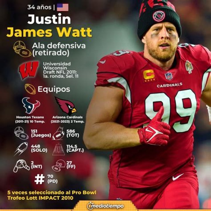 Apart from playing football, Justin James Watt has appeared in many screen projects since 20123. His first appearance was in three episodes of the TV series The League as J.J. Watt.
