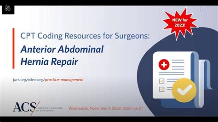 Hernia repair CPT code Descriptor 2017 work RVU 49650 Laparoscopy, surgical; repair initial inguinal hernia 6.36 49651 Laparoscopy, surgical; repair recurrent inguinal hernia 8.38 49652 Laparoscopy, surgical, repair, ventral, umbilical, spigelian or epigastric hernia (includes mesh insertion, when performed); reducible 11.92 Click to see full answer. Similarly one may ask, what is the CPT code for open umbilical hernia repair?Answer: Repair of an umbilical hernia via an open approach is coded as 49585. Mesh placement may not be reported separately. Per CPT, mesh placement is only reported separately with repair of open Incisional hernias.Subsequently, question is, what is the CPT code for incisional hernia repair? If you are new to general surgery coding, read on. Placement of mesh (49568) is an add-on code for incisional or ventral hernia repairs, performed via an open approach. The range of codes that CPT® code 49568 may be reported with is 49560—49566. Keeping this in view, what is a Retrorectus hernia repair? Retrorectus ventral hernia repair, as originally described by Rives, Stoppa, and Wantz, allows for creation of a well-vascularized sublay space for mesh placement, although within the confines of the rectus sheath.What is robotic hernia surgery?Robotic Surgery for Hernia Repair. Robotic surgery is a newer technique for repairing hernias in which the surgeon is seated at a console and handles the surgical instruments from the console. Advantages of robotic surgery include three-dimensional images of the inside of the abdomen, smaller scars, and less pain.